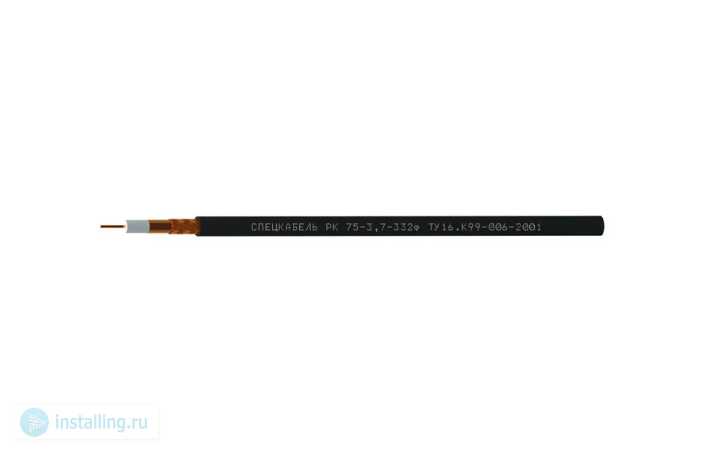 Внутренний проводник: медь 1х0.80мм; Изоляция:полиэтилен физического вспенивания диаметр по изоляции 3,70 мм ; Внешний проводник:оплетка плотностью 88-92 из медных проволок диаметром 0,12 мм, наложенная поверх ламинированной медной фольги диаметр по внешнему проводнику 4,35 мм; Оболочка: светостабилизированный полиэтиленD=6.1мм.; - 60°..+85°С. ; Цвет: черный