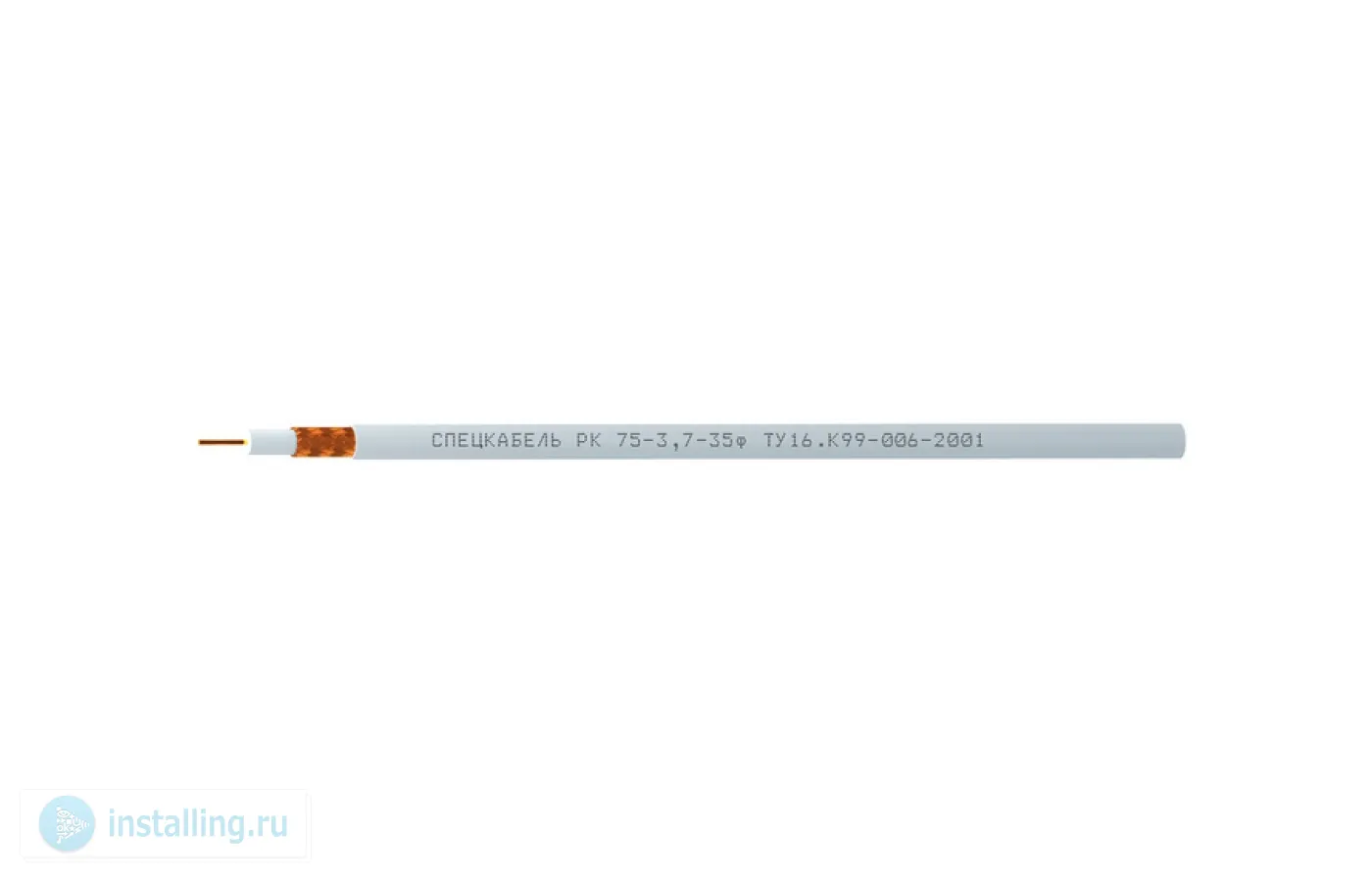 Внутренний проводник: медь 1х0,80мм; Изоляция:полиэтилен физического вспенивания диаметр по изоляции 3,70 мм ; Внешний проводник:оплетка плотностью 88-92 из медных проволок диаметром 0,12 мм диаметр по внешнему проводнику 4,35 мм ; Оболочка: ПВХD=6,1мм.; - 40°..+70°С. ; Цвет: серый