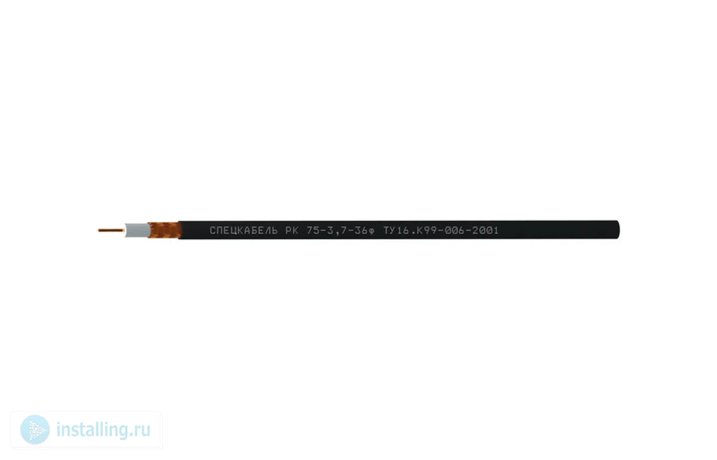 Внутренний проводник: медь 1х0,80мм; Изоляция:полиэтилен физического вспенивания диаметр по изоляции 3,70 мм ; Внешний проводник:оплетка плотностью 88-92 из медных проволок диаметром 0,12 мм диаметр по внешнему проводнику 4,35 мм ; Оболочка: светостабилизированный полиэтиленD=6,1мм.; - 60°..+85°С. ; Цвет: черный
