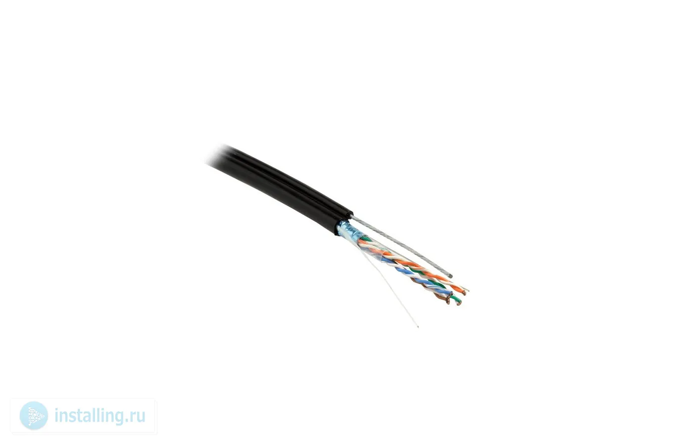 F/UTP, кат.5e, 4 пары24AWG ,одножил.solid ,экран-фольга,с усил.металл.тросом, внешний, PE, t-раб.-40...+50°C, черный - гарантия: 15 лет компонентная. 500 м.