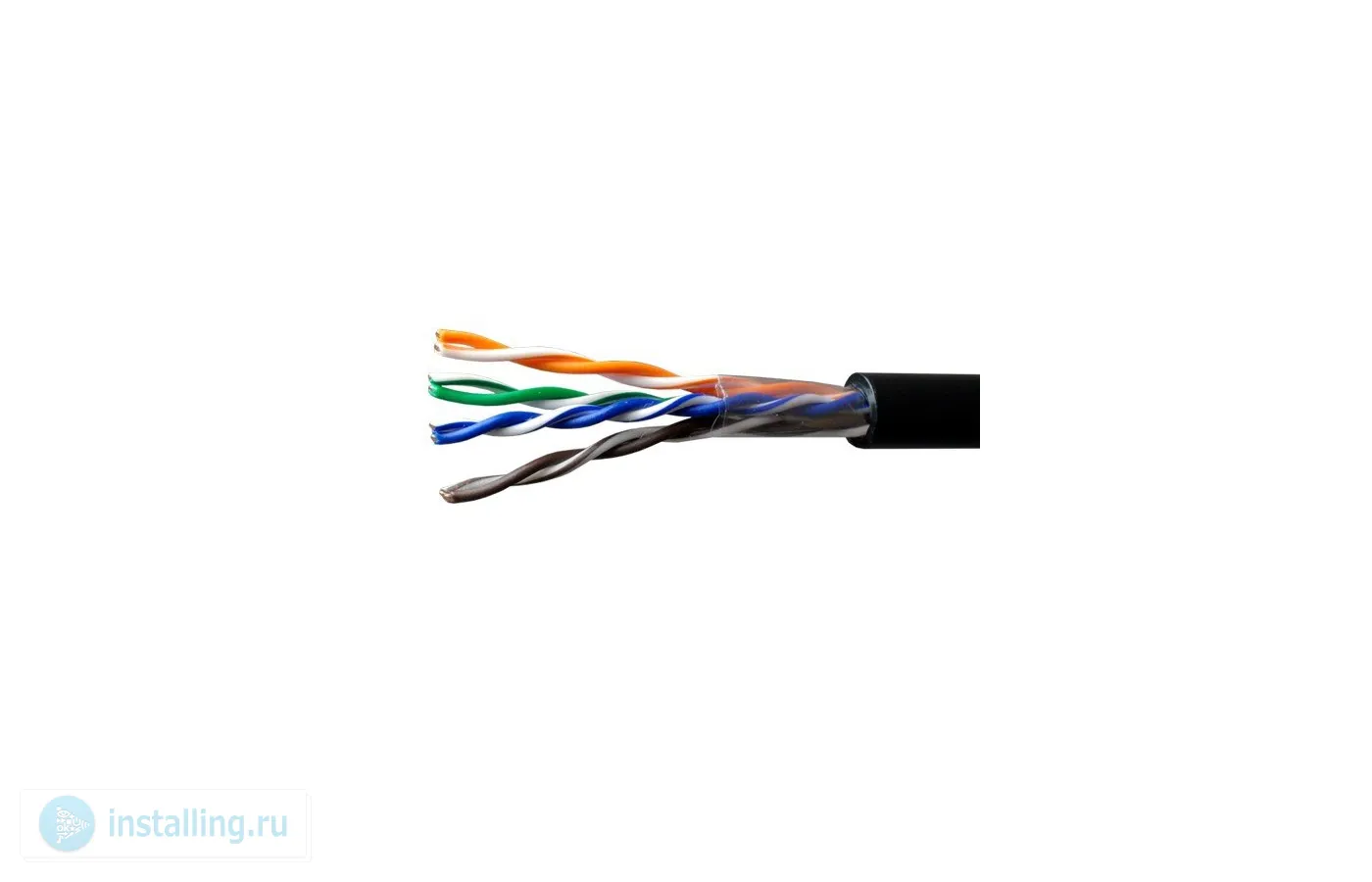 Медный U/UTP, Сat.5e, 4х2х0.48, без экрана, для наружной прокладки, РЕ оболочка, цвет черный, внешний диаметр 5.1 мм, t-раб.-50 ..+60°С, t-монт.-10…+60°С. 305 м