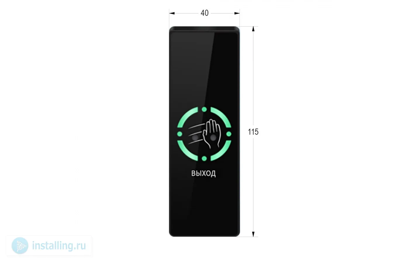 Бесконтактная, накладная, IP66, группа контактов НЗ/НР, 12/24 В, таймер задержки, подсветка синий/зелёный, дальность считывания 3-15 см. Материал ABS пластик, -20...+65°C, 115х40х15 мм.