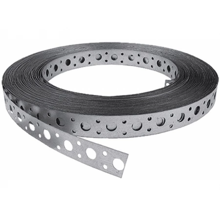 Для подвеса воздуховодов различной формы, а также легких трубопроводов. Ширина 20 мм, толщина металла 0.75 мм, диаметр перфорации 8.5 мм. Оцинкованная сталь