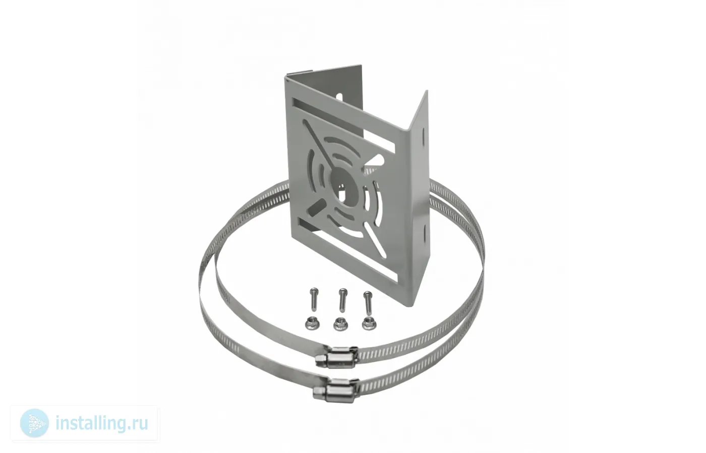 Кронштейн малый универсальный, предназначен для крепления 1 видеокамеры на столб или угол здания, подходит для 99 % видеокамер, с хомутом, оцинкованная сталь, допустимая нагрузка 10 кг, -50°…+60°C, 140х138.5х80 мм.