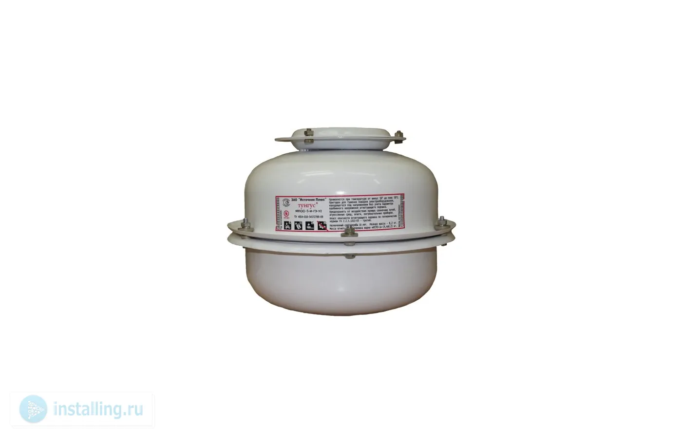 Для тушения пожаров классов А, В, С и электрооборудования, находящегося под напряжением в комплекте с сигнально-пусковым устройством УСПАА-1 v5; вместимость корпуса 4.7 л, время действия 1 с, высота установки 1...6 м, защищаемая площадь до 78 кв.м; t-раб.-50...+50°С, 280х210 мм, 8.2 кг