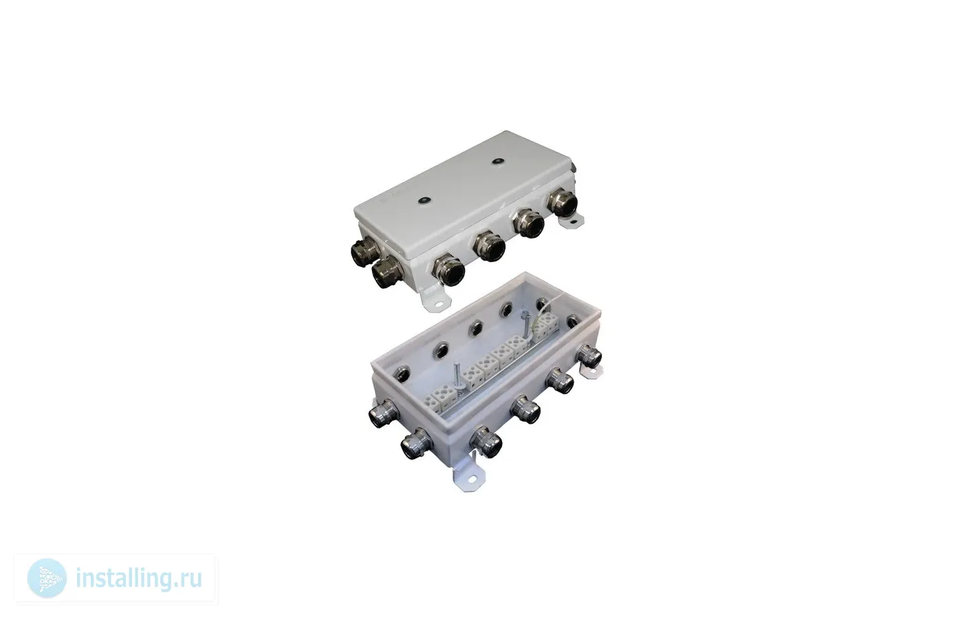 Коробка монтаж.огнестойкая, керам.колодка 16х3мм?, IP66, 12 вводов, t-раб.-40…+100°C, 123х123х60 мм. Корпус из оцинкованной стали покрытый полимерной краской.