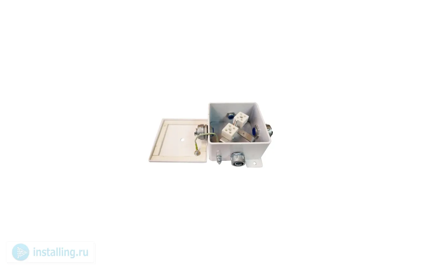 Корпус коробки целиком изготовлен из стали 2,5-3 мм. Имеет двойную защиту от коррозии (гальваническое покрытие и покраска). Крышка прижимается к корпусу через силиконовую прокладку. Винт крепления крышки снабжен уплотняющей тарельчатой шайбой с фторопластовым покрытием. Внутри корпуса коробки установлены керамические клеммные колодки, обеспечивающие соединение "под винт", и клемма заземления. В боковых стенках устанавливаются металлические кабельные вводы. Крепление коробки к элементам конструкций рекомендуется осуществлять на приварные пластины с применением гаек и винтов или с помощью саморезов и металлических дюбелей.