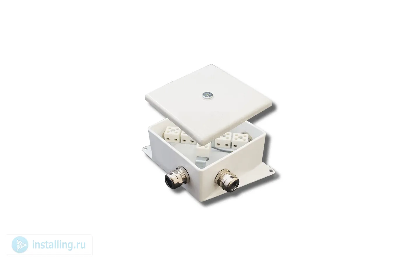 Корпус коробки целиком изготовлен из стали 2,5-3 мм. Имеет двойную защиту от коррозии (гальваническое покрытие и покраска). Крышка прижимается к корпусу через силиконовую прокладку. Винт крепления крышки снабжен уплотняющей тарельчатой шайбой с фторопластовым покрытием. Внутри корпуса коробки установлены керамические клеммные колодки, обеспечивающие соединение "под винт", и клемма заземления. В боковых стенках устанавливаются металлические кабельные вводы. Крепление коробки к элементам конструкций рекомендуется осуществлять на приварные пластины с применением гаек и винтов или с помощью саморезов и металлических дюбелей.