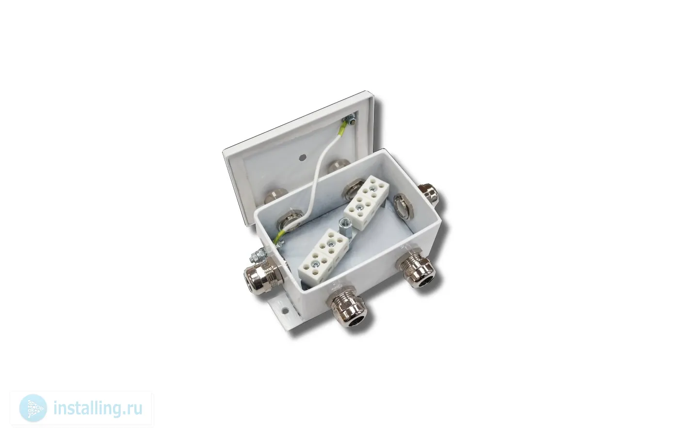 Корпус коробки целиком изготовлен из стали 2,5-3 мм. Имеет двойную защиту от коррозии ( гальваническое покрытие и покраска). Крышка прижимается к корпусу через силиконовую прокладку. Винт крепления крышки снабжен уплотняющей тарельчатой шайбой с фторопластовым покрытием. Внутри корпуса коробки установлены керамические клеммные колодки, обеспечивающие соединение "под винт", и клемма заземления. В боковых стенках устанавливаются металлические кабельные вводы. Крепление коробки к элементам конструкций рекомендуется осуществлять на приварные пластины с применением гаек и винтов или с помощью саморезов и металлических дюбелей.