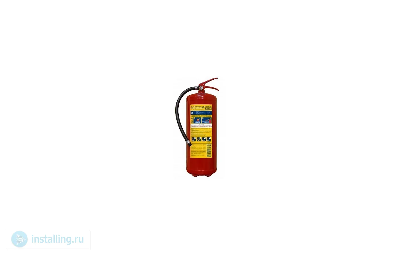 Огнетушитель порошковый, огнетушащая способность 4А, 144В, масса огнетушащего вещества 10 кг, объем баллона 12.5 л, продолжительность подачи ОТВ 15 сек, t_раб.-50…+50°С, 640х185 мм, 12.5 кг
