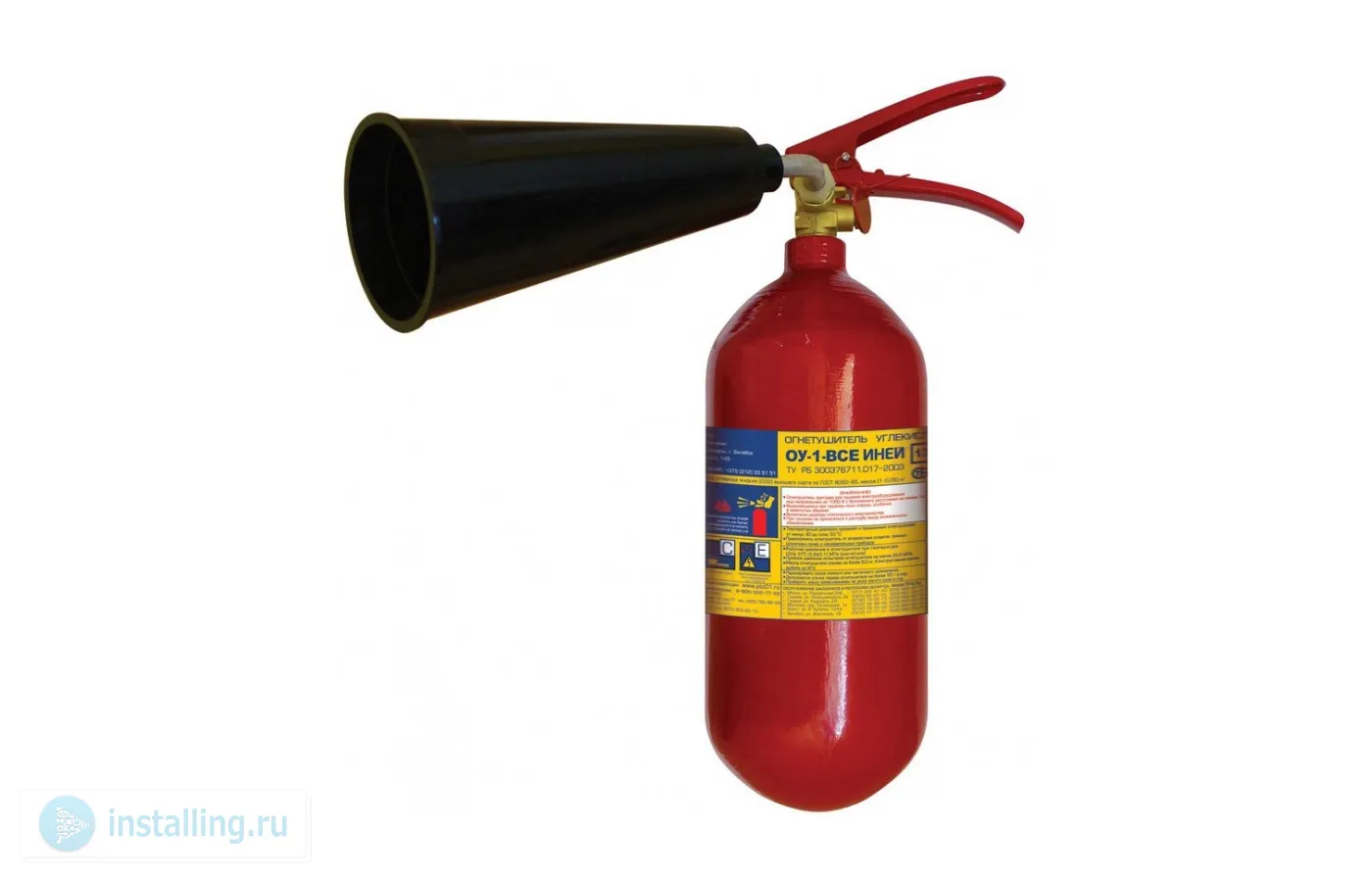 Углекислотные огнетушители (ОУ) «ИНЕЙ» применяются для тушения пожаров классов В, С, Е и наиболее эффективны для тушения электроустановок, находящихся под напряжением, поскольку практически не наносят ущерб защищаемому имуществу, так как углекислота, находящаяся в качестве заряда внутри углекислотного огнетушителя в сжиженном виде, превращается после выброса из огнетушителя в «сухой газ», который не загрязняет защищаемое имущество.