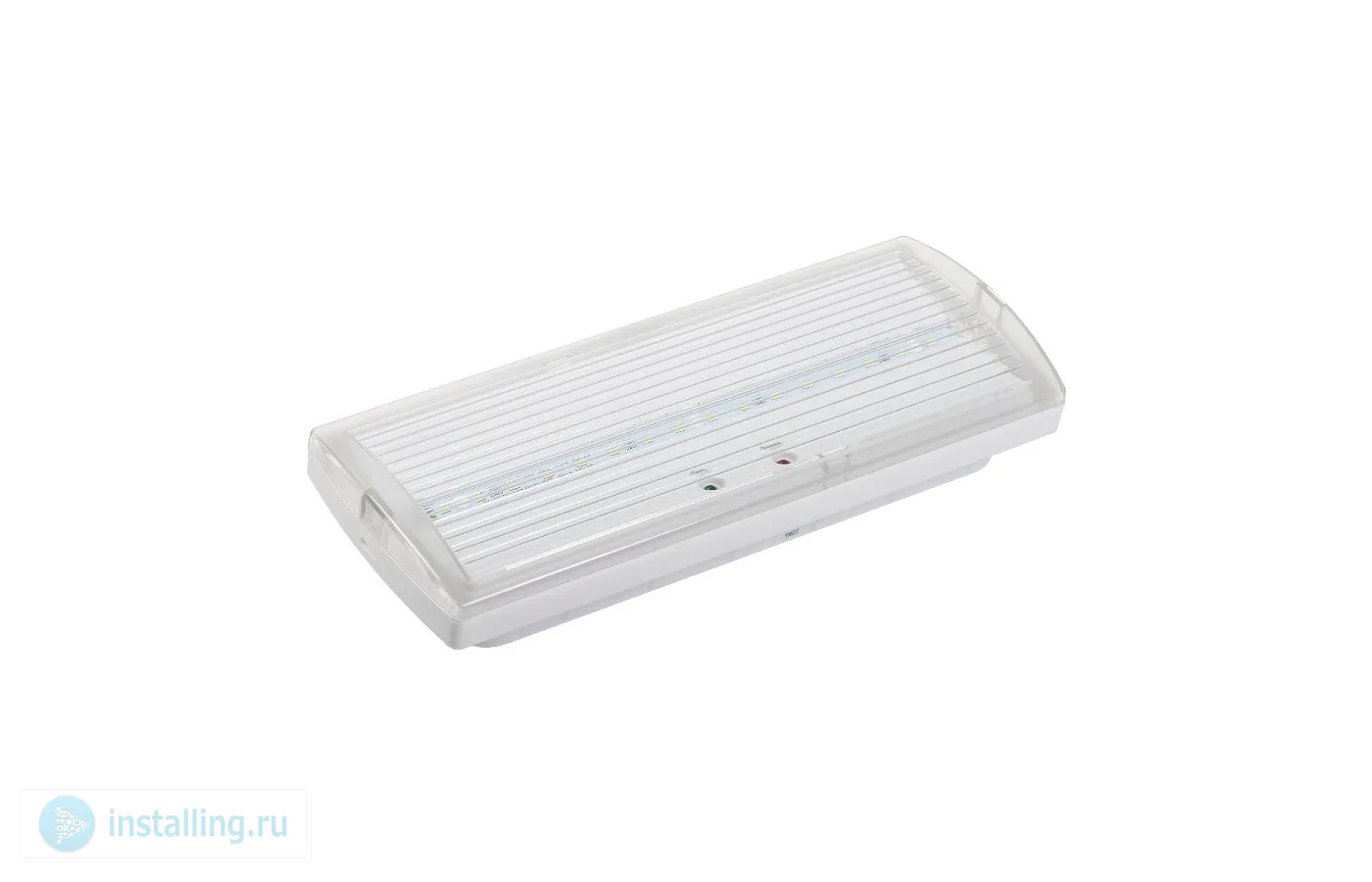 Светильник аварийный постоянного действия, односторонний, кол-во светодиодов: 16 шт, U-пит.перем. 230 В, U-пит.пост. 12/24 В, Р-потр. 4 Вт, номин. время работы 3 ч, встроенный Ni-Cd аккумулятор 3.6 В / 1.2 Ач, мощность лампы: 3.5 Вт, IP20, t-раб. -10...+35 °C, габ.размеры 270х110х55 мм