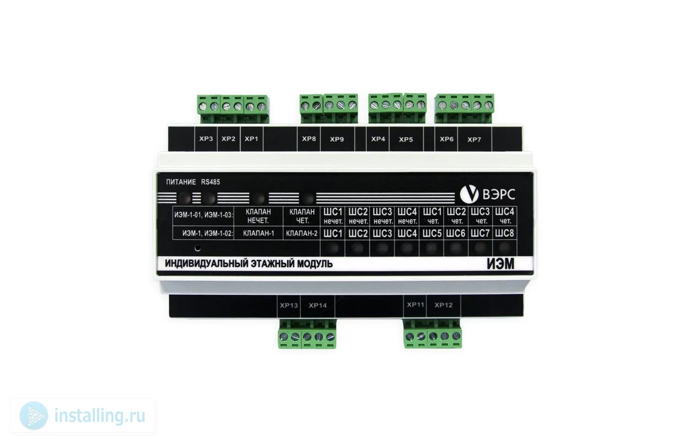 Индивидуальный этажный модуль; до 24 модулей в системе; 8 ШС; 4 входа контроля положения клапанов; 4 выхода управления клапанами 220В/1А; 3 выхода оповещения 12В/1А; U-пит.20…27 В; I-потр.120 мА; t-раб.0…+50°С; 160?90?60 мм. Управление клапанами дымоудаления на 2 этажах по 1 клапану на этаже.