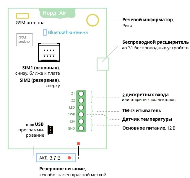 Беспроводная контрольная панель с встроенной клавиатурой и GSM, 2 SIM, до 31 беспроводных устройств СН-радио, 2 дискретных входа/выхода, 32 раздела, вход ТM, до 32 кодов пользователей, встроенная GSM-антенна MMCX для внешней, речевой информатор, Mini USB, t-раб.?20…+50?C, 150х96х33 мм. В комплекте блок питания 220В/12В1А, АКБ 18650 Li-ion 3.7В/1100 мАч.