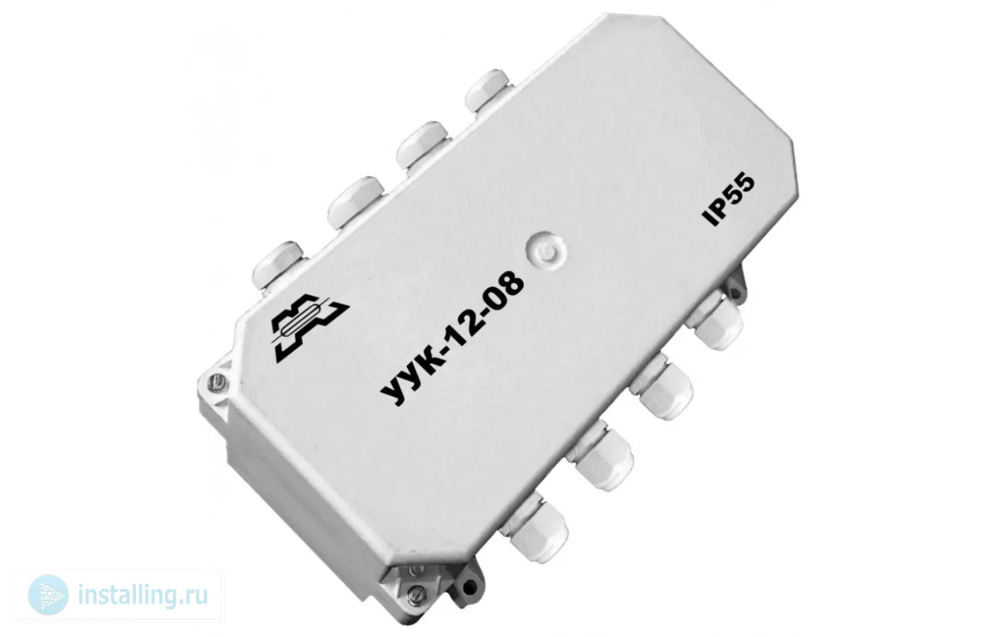 Блок релейный, 8 реле, контакты на переключение; U-упр. 12 В; I-упр. <55 мА; U-коммут. до 250В; I-коммут. до 8 А; IP55; t-раб. -30...+50°С; габ.размеры 302х225х93 мм. Клеммник T31, S? кабеля до 2,5мм?. 8 герметичных кабельных вводов PG16 под кабель O 9...14 мм.