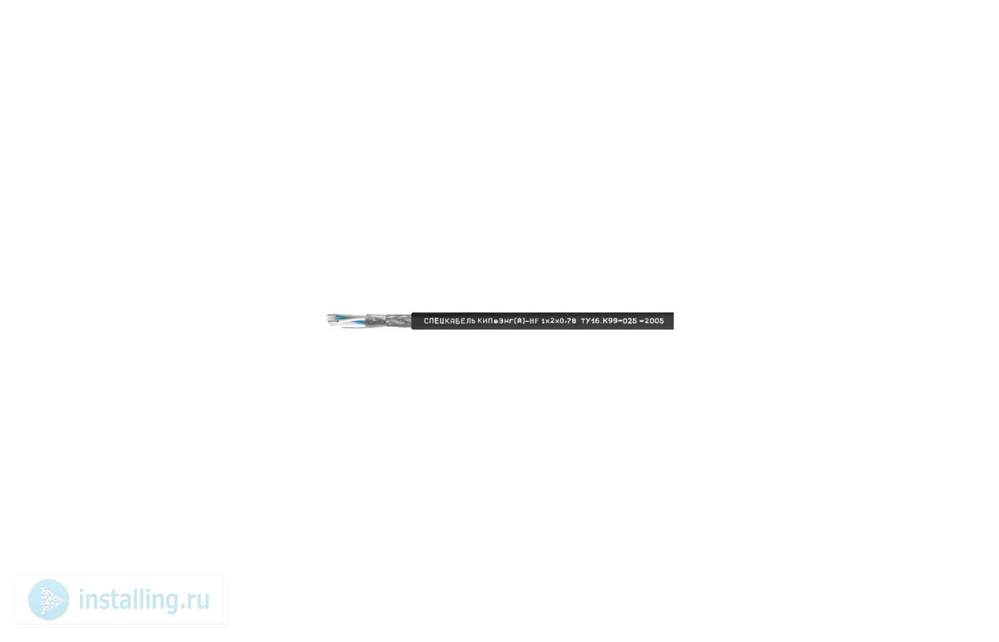 Пары с многопроволочными медными лужёными жилами диаметром 0,78 мм (7х0,26 мм) с изоляцией из пористого полиэтилена, в общем экране из алюмолавсановой ленты с контактным проводником и оплёткой из медных лужёных проволок плотностью 88-92%. Пары имеют цветовую кодировку изоляции. Оболочка из безгалогенной полимерной композиции повышенной масло-бензостойкости (КИПвЭнг(А)-HF) черного или белого цвета.