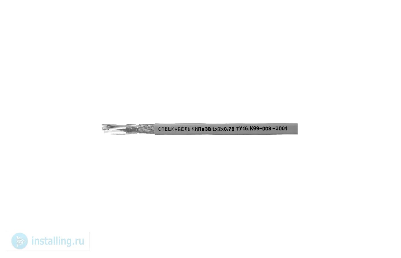 Пары с многопроволочными медными лужёными жилами диаметром 0,78 мм (7х0,26 мм) с изоляцией из пористого полиэтилена, в общем экране из алюмолавсановой ленты с контактным проводником и оплёткой из медных лужёных проволок плотностью 88-92%. Пары имеют цветовую кодировку изоляции. Оболочка из ПВХ пластиката обычной теплостойкости (КИПвЭВ) серого цвета.
