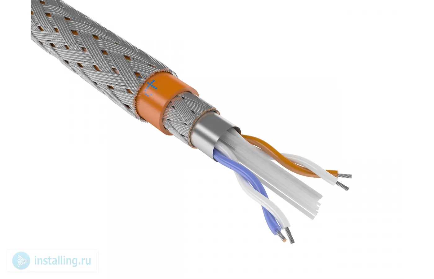 Кабель парной скрутки с медными многопроволочными жилами D=0.6 мм, с изоляцией из пористого полиэтилена, с экраном в виде оплетки из медных луженных проволок плотностью 85-92 , наложенной поверх ламинированной алюминиевой фольги и контактной жилы, в броне в виде оплетки из стальных оцинкованных проволок, наложенных поверх оболочки из термопластичной композиции, не содержащей галогенова, внешний диаметр 10.5 мм. Цвет оболочки черный. Для внутренней прокладки.