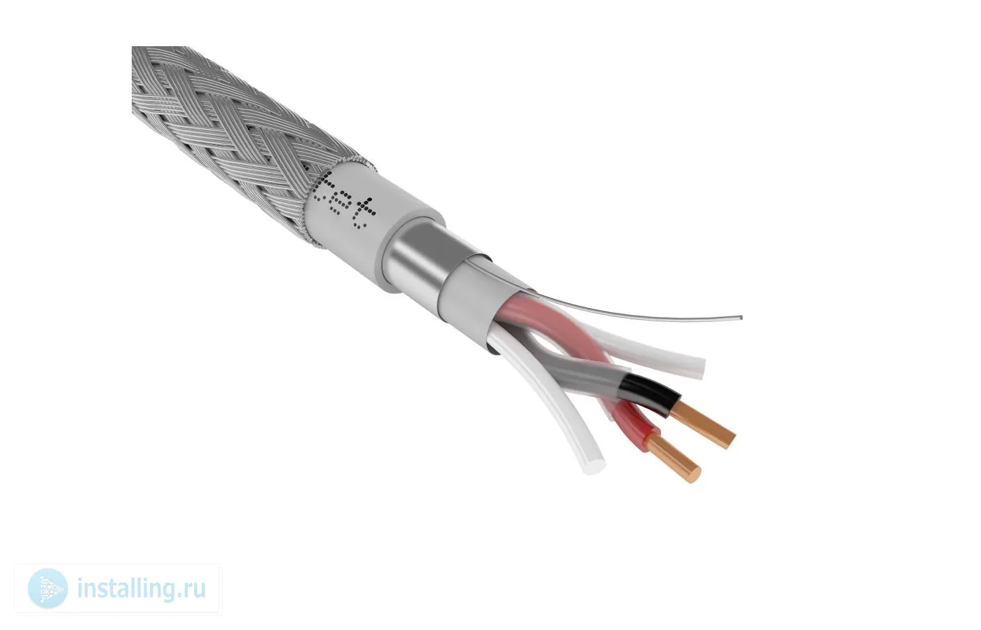 Кабель парной скрутки с медными однопроволочными жилами D=1.13 мм в броне, с комбинированной изоляцией кремнийорганический и полиолефиновый слои, в экране из алюмополимерной ленты, в оболочке из ПВХ пониженной пожарной опасности с низким дымо- и газовыделением, внешний диаметр 12.7 мм. Цвет оболочки серый. Для прокладки внутри помещения.