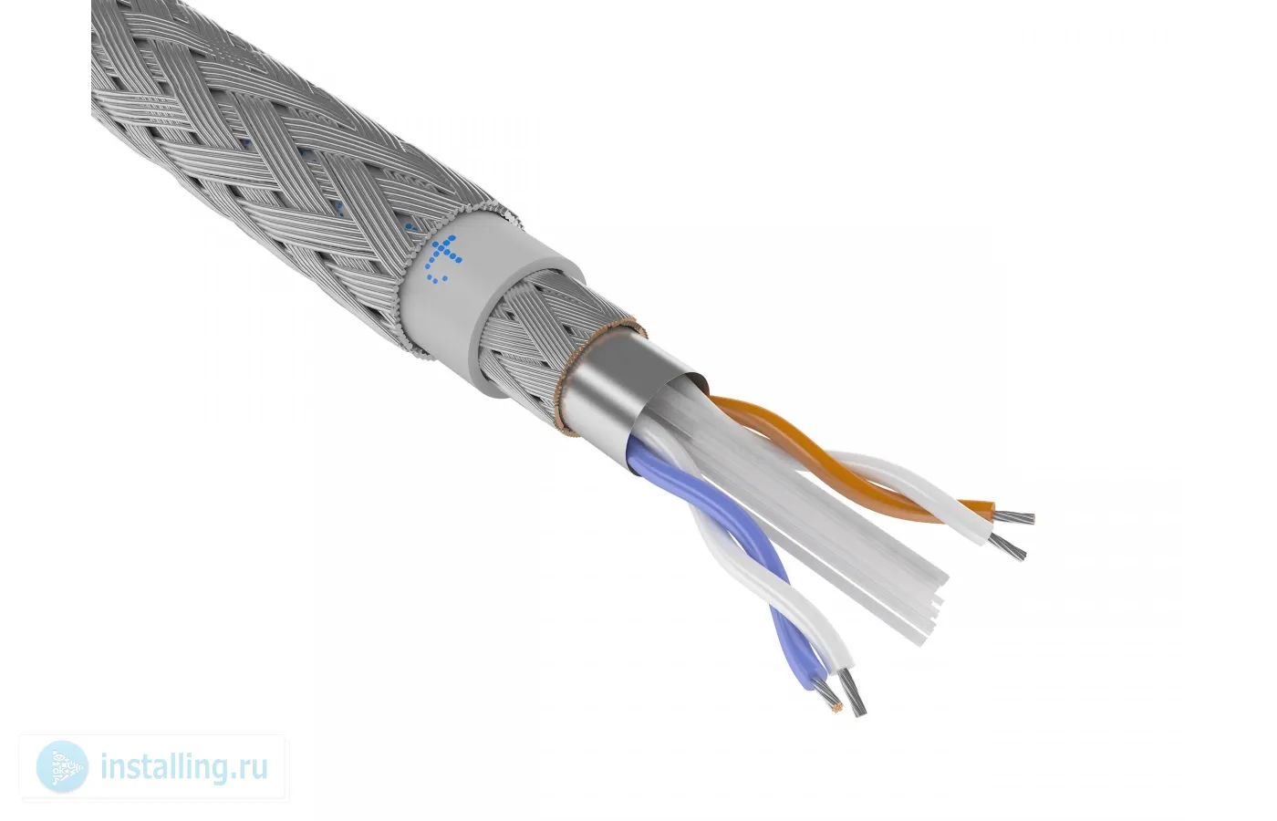 Кабель парной скрутки с медными многопроволочными жилами D=0.78 мм, с изоляцией из пористого полиэтилена, с экраном в виде оплетки из медных луженных проволок плотностью 85-92 , наложенной поверх ламинированной алюминиевой фольги и контактной жилы, в броне в виде оплетки из стальных оцинкованных проволок, наложенных поверх оболочки из ПВХ пластиката пониженной пожарной опасности с низким дымо- и газовыделением, внешний диаметр 11.9 мм. Цвет оболочки серый. Для прокладки внутри помещения.