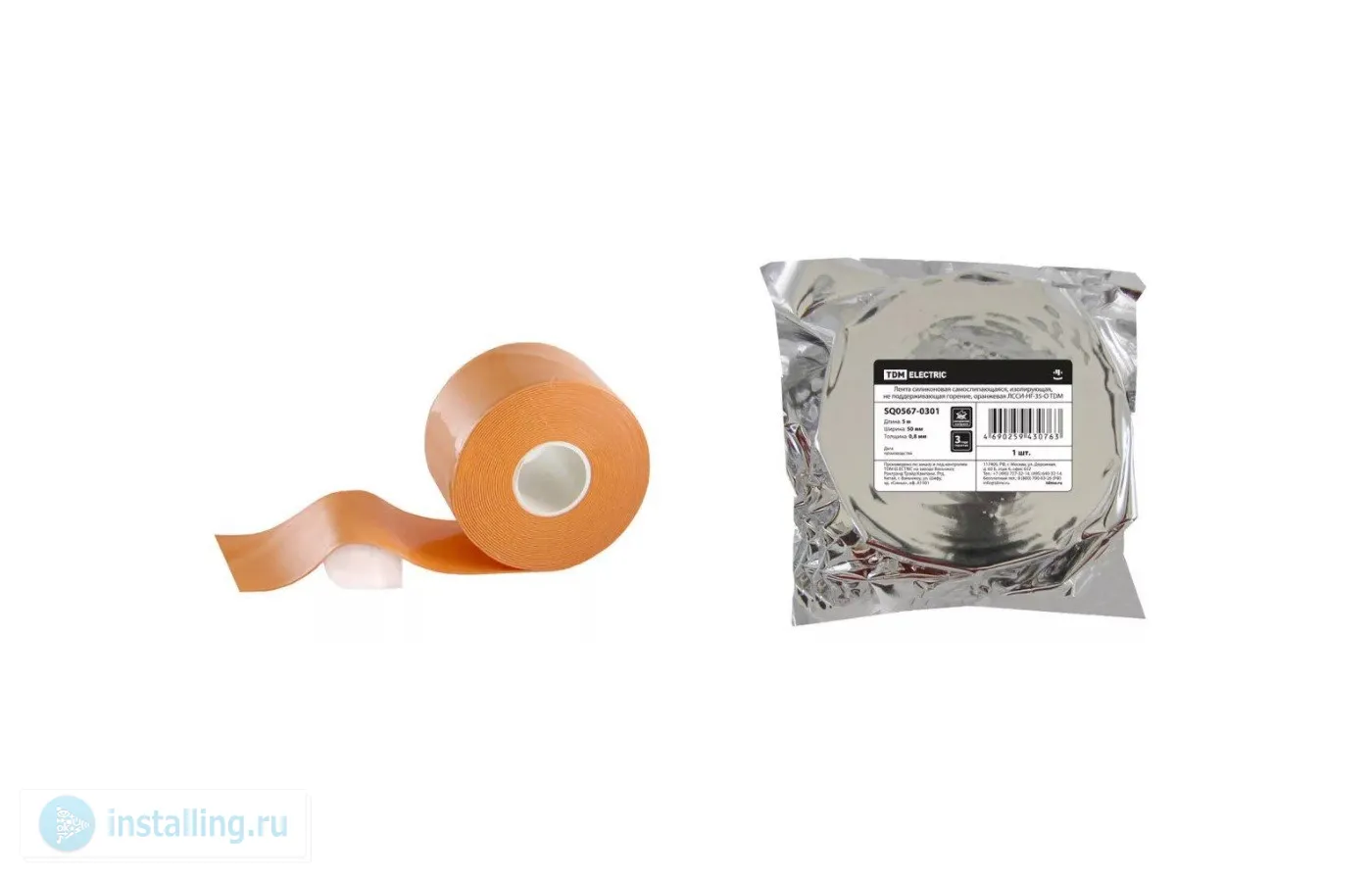 Лента силиконовая для изоляции и герметизации электрических соединений методом холодной усадки, высокая адгезия к материалам, высокая механ. и электрическая прочность до 35 кВ ; рулон Д х Ш х Т 5000 х 50 х 0.5 мм
