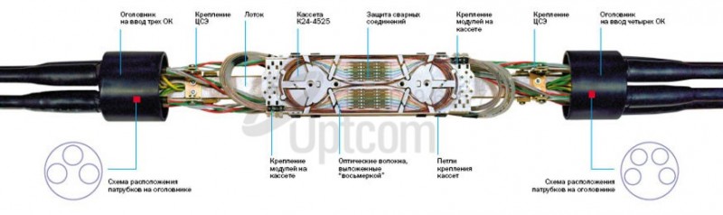 Муфта оптическая проходная укороченная; 3+3 ввода; Установка 4 сплайс-кассет; -40 …+70 °С; 90х920 мм. Возможна установка на открытом воздухе и в подземных колодцах.
