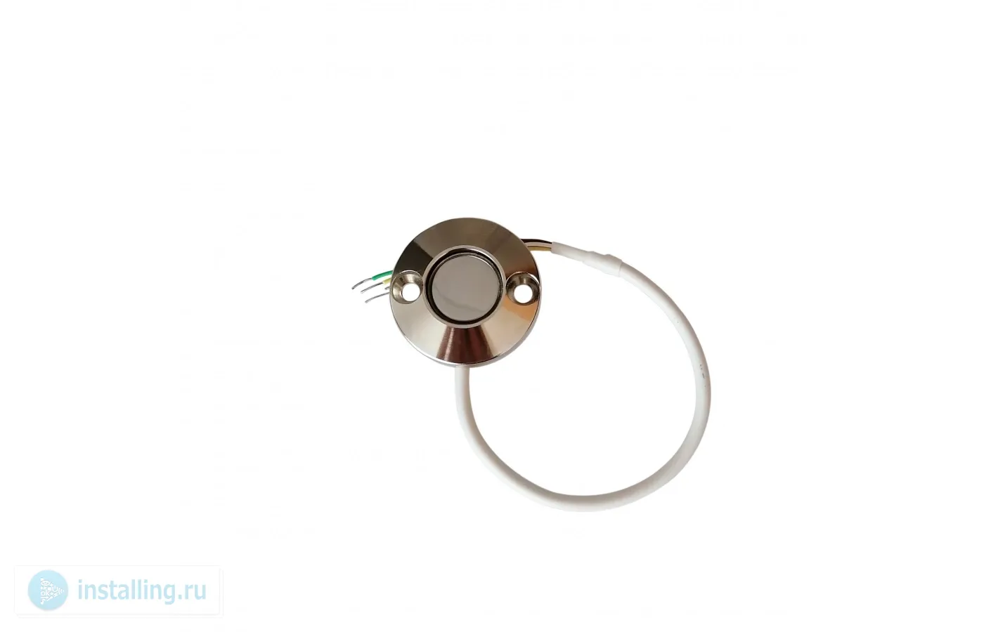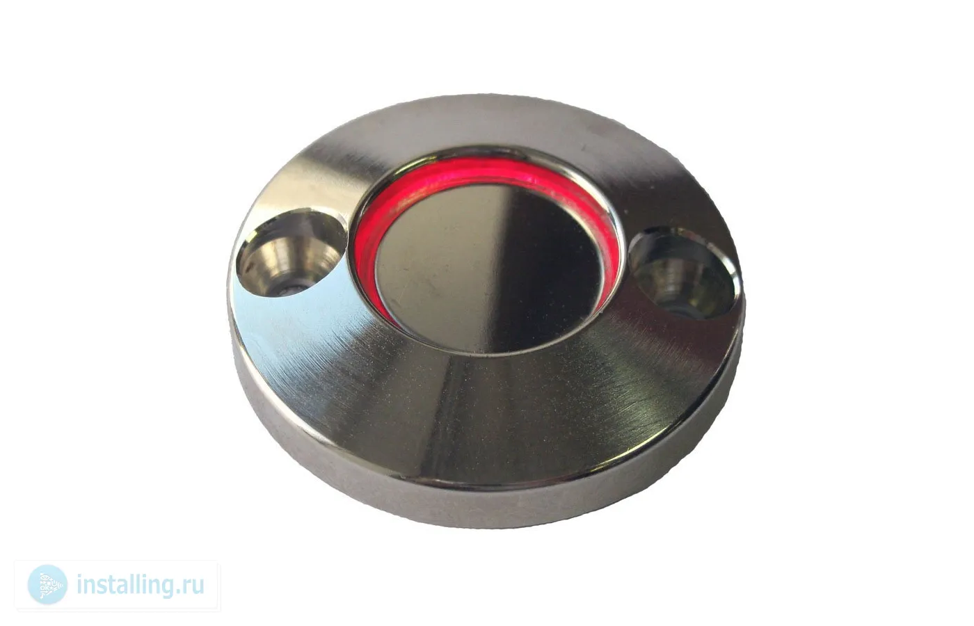 Антивандальный, накладной, с подсветкой по кругу, питание подсветки 2 В (или 12 В при подключении резистора 1 кОм), полированная латунь с никелированным покрытием ("под хром"), 34х34х7,5 мм.