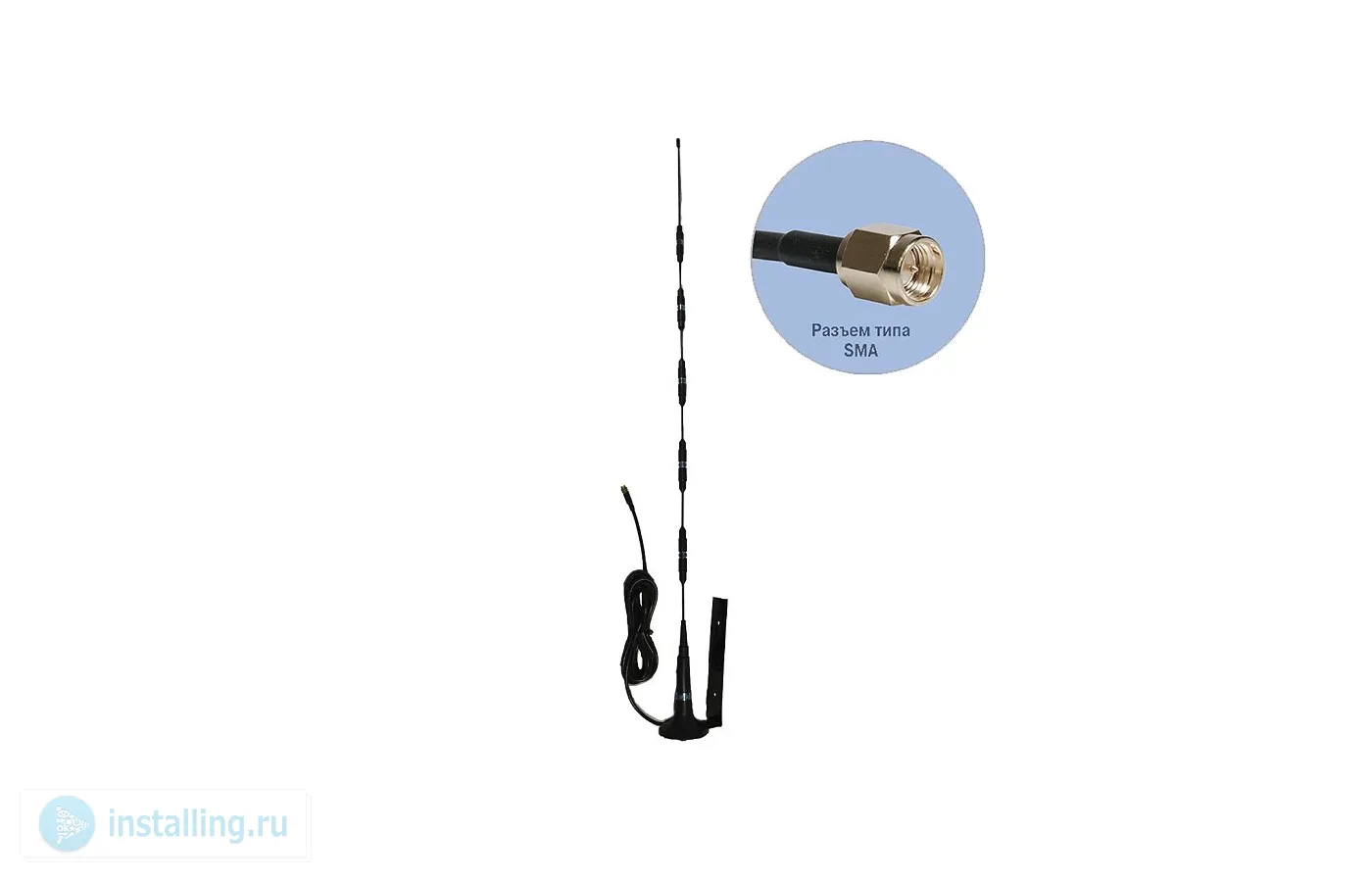 GSM антенна для промышленного GSM модема, пульта центрального наблюдения, стационарного GSM модема или сотового телефона, SMA разъем, длина кабеля 3 м, коэфф.усиления 14 dB, на кронштейне, высота антенны 820 мм, ветровая нагрузка 150 км/ч