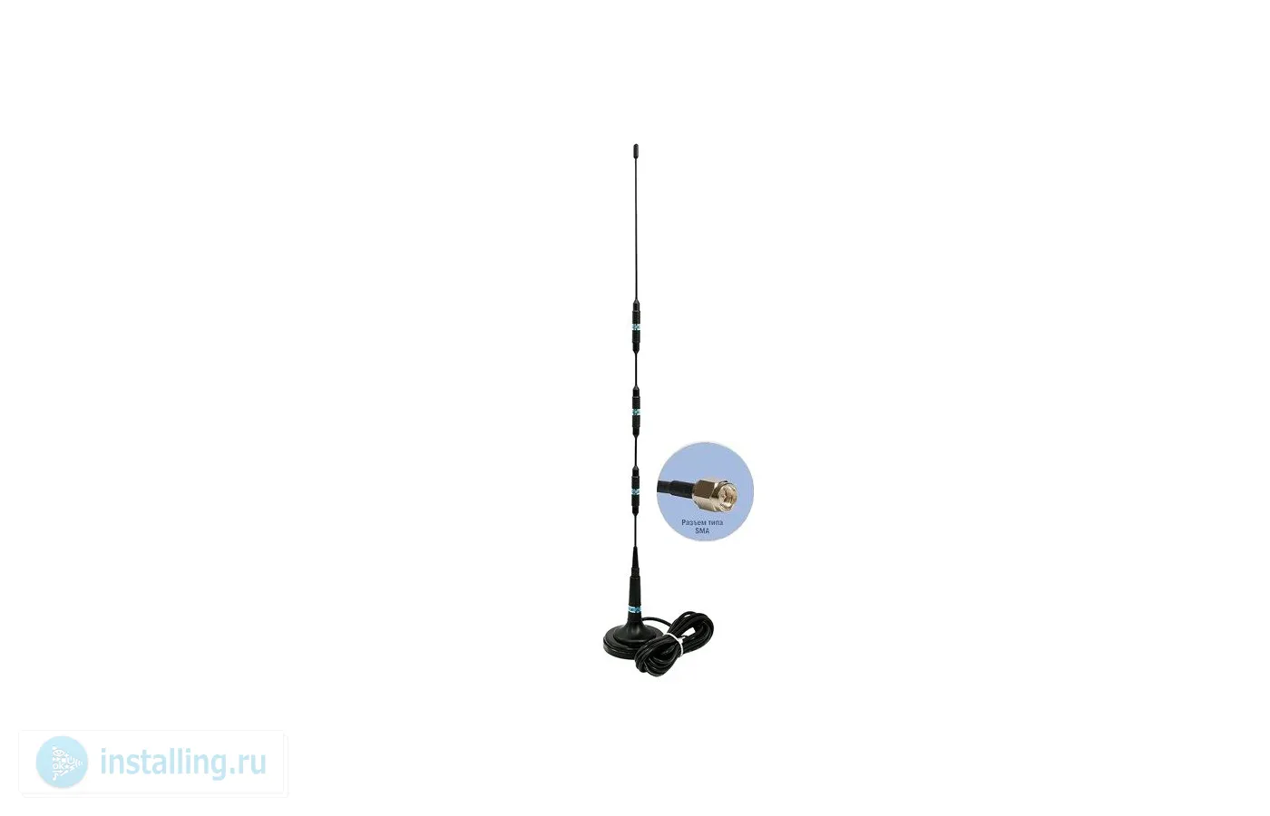 GSM антенна для промышленного GSM модема, пульта центрального наблюдения, стационарного GSM модема или сотового телефона, три катушки, SMA разъем, длина кабеля 5 м, коэфф.усиления 9 dB, магнитная база D72мм, высота антенны 620мм, ветровая нагрузка 200км/ч