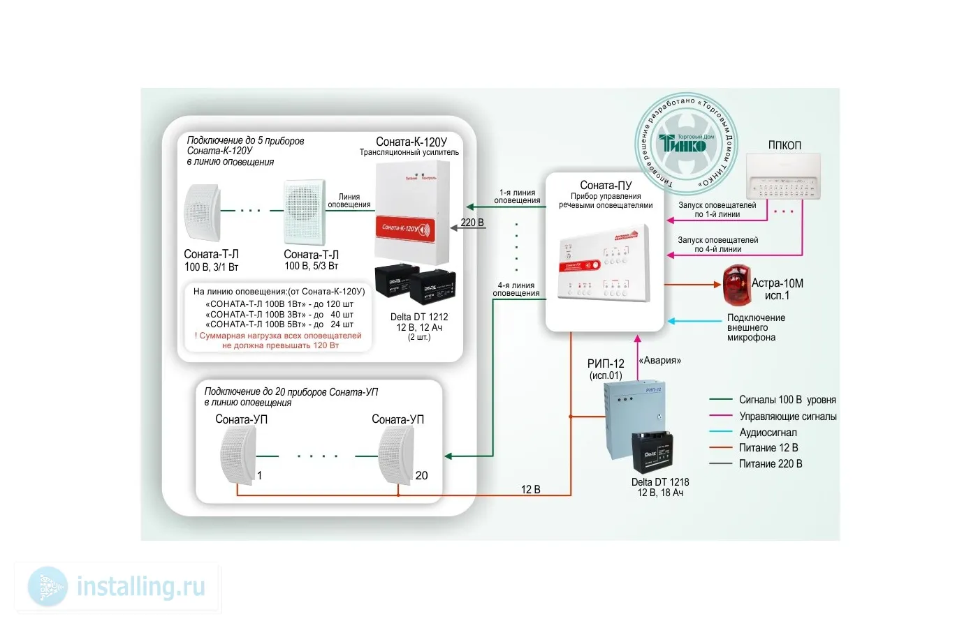 Система автоматического оповещения о пожаре с контролем линий для объектов различной степени сложности на базе оборудования Соната-ПУ и Соната-К-120У Арсенал СОУЭ-006