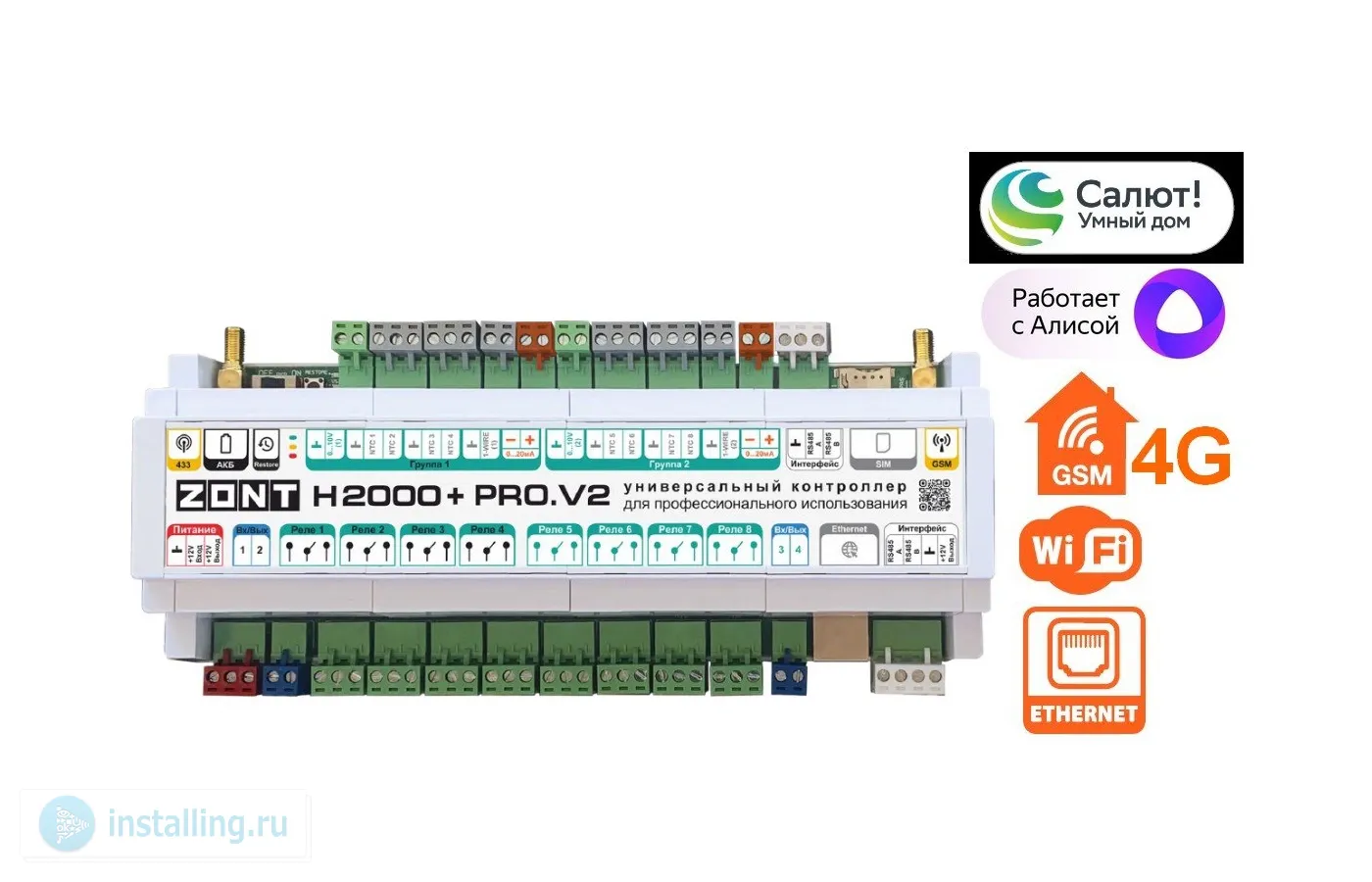 Универсальный контроллер ZONT H2000+ PRO.V2 – прибор для профессиональной автоматизации и дистанционного управления инженерными системами любой сложности.