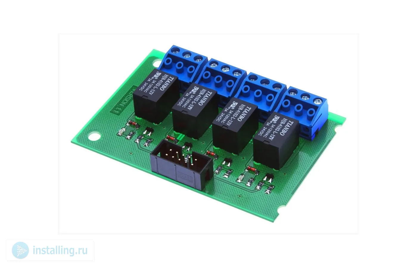 Релейный расширитель на 4 реле для контроллера AC-08. Питание от контроллера AC-08, 12 В, 130 мА, 0...+55 °C, 83х56х14 мм