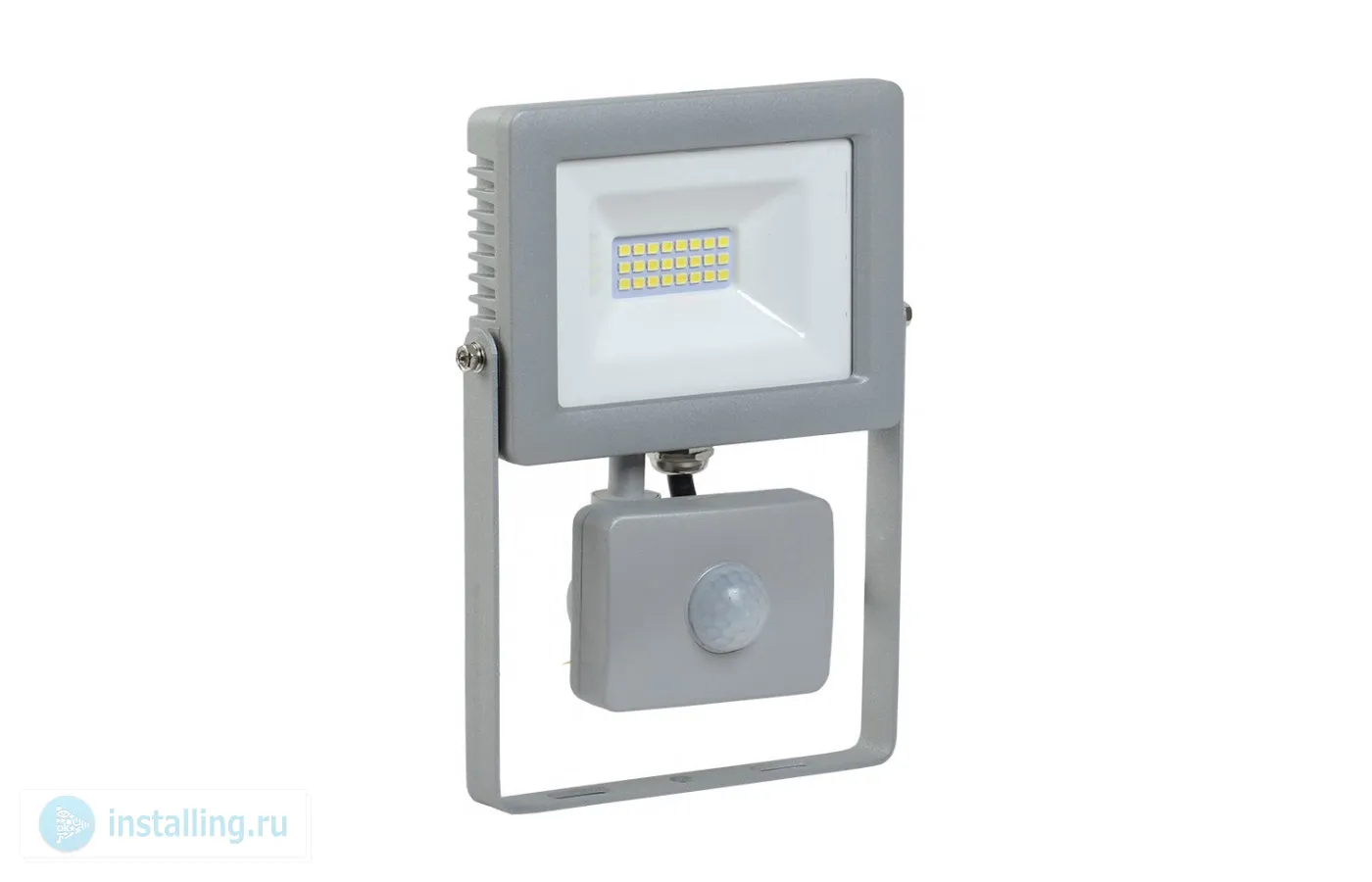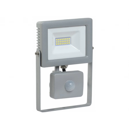 20 Вт, световой поток 1600 лм; цветовая температура 6500 К; угол светового пучка 120°; тип датчика инфракрасный, 120°, дальность 6 м, U-пит. 180…240 В/5060Гц, IP44, t-раб. -45…+50°С, габ.размеры 122х182х54 мм, алюминиевый корпус, серый.