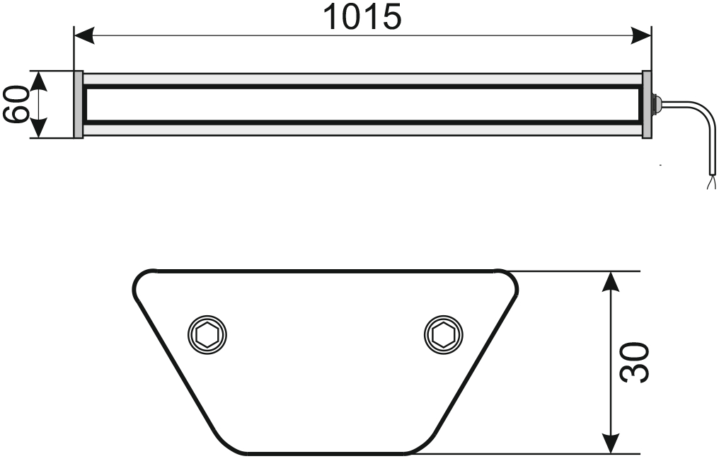 Линейный светильник; световой поток 3000 лм, цветовая температура 5000 К; U-пит.198...242 В, P-потр.36 Вт; IP65, t-раб.-40...+40°С, 1015х60х30 мм, 1.5 кг.