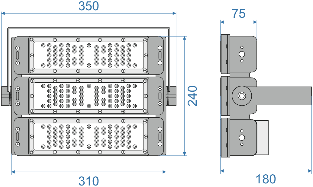 Промышленный светильник с повышенной энергоэффективностью; световой поток 20000 лм, цветовая температура 5000 К; U-пит.110…265 В, P-потр.150 Вт; IP65, t-раб.-40...+50°С, 350х240х75 мм, 3.3 кг.