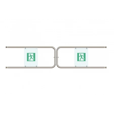 Для двойной распашной секции ограждения с механическим фиксатором, с шарнирами и с заполнением с пиктограммами. Ширина прохода 2600мм. Материал - нержавеющая сталь AISI304.
