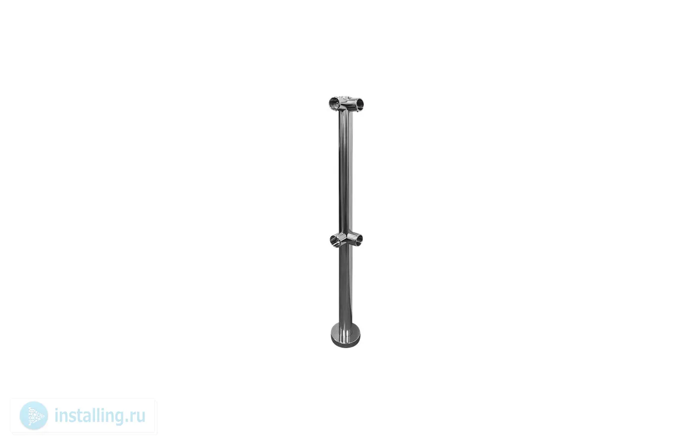 Стойка с крепежным фланцем и накладкой из нержавеющей стали AISI 304. Высотой 1000 мм. С четырьмя отверстиями под соединительные муфты 2+2 под углом 90 градусов.