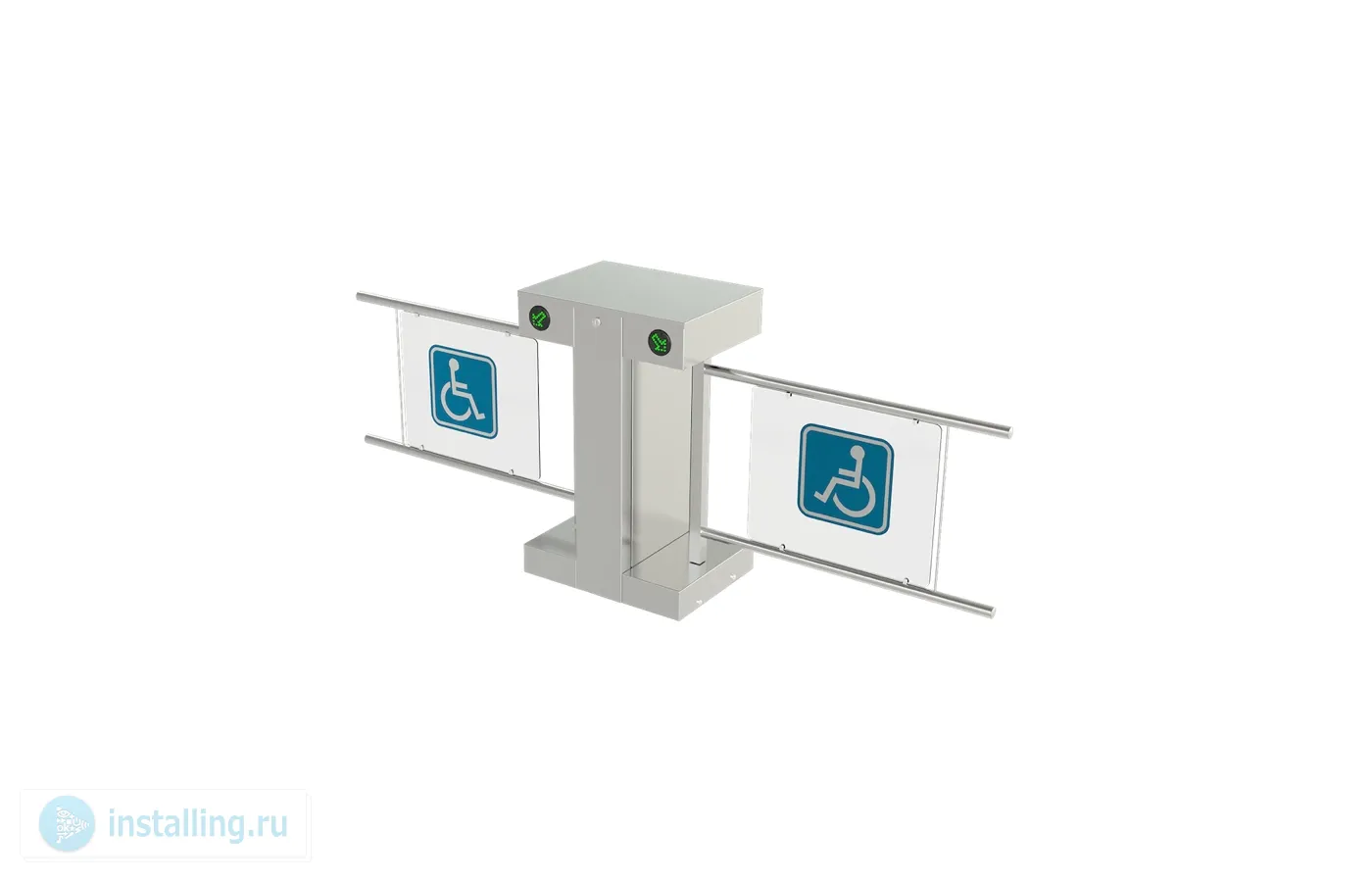 Турникет-калитка МГНмоторизованная SALOON 705 двухпроходная. Корпус и планки - нержавеющая сталь. Светодиодные указатели прохода и направления. Сервопозиционный электропривод створки с определением препятствий и автоматической разблокировкой при отключении электроэнергии. Створка 900 мм с информационной вставкой. Время открытия 2.2 сек. Встроенный блок питания. IP54.