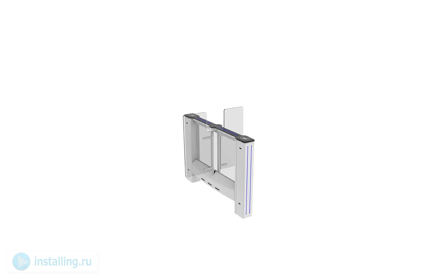 Центральный модуль распашного турникета. Светодиодные указатели прохода и направления. Корпус - нержавеющая сталь. Сервопозиционный электропривод створки с определением препятствий и автоматической разблокировкой при отключении электроэнергии. Створка из 10 мм закаленного стекла. Ширина прохода 550 мм. Высота створки 1200 мм. Время открытия 2 сек. Встроенный блок питания. IP 44.