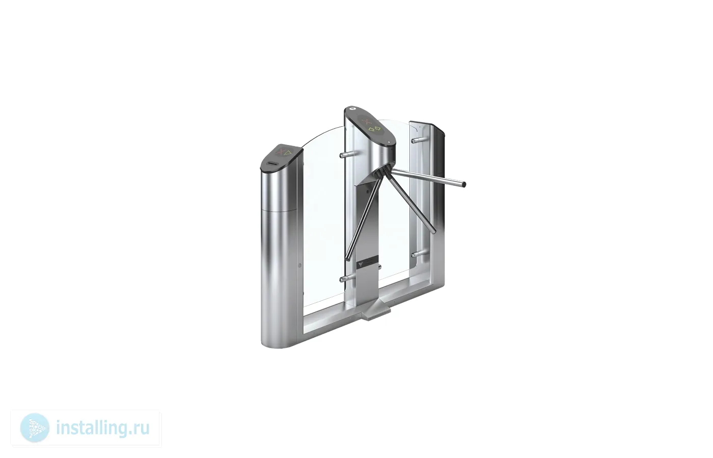 Турникет-трипод электромоторный со стеклом и картоприемником, индикаторы прохода, пульт управления, планки и корпус из нержавеющей стали, крышка из полированного искусственного камня.