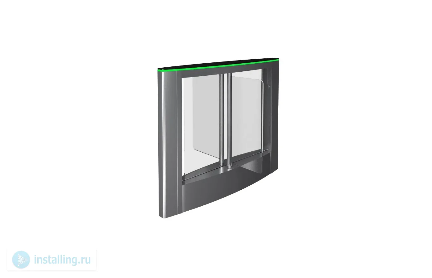 Ширина прохода 900 мм. Корпус турникета выполнен из шлифованной нержавеющей стали. Преграждающие створки выполнены из закаленного стекла. В нижней части модулей предусмотрены крышки основания для доступа к отверстиям для ввода кабелей БП, ПУ и СКУД, 1052?1330?1052 мм.