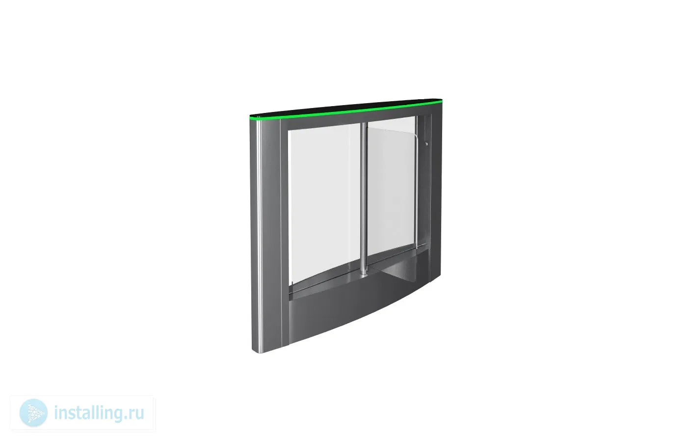 Ширина прохода 900 мм. Корпус турникета выполнен из шлифованной нержавеющей стали. Преграждающие створки выполнены из закаленного стекла. В нижней части модулей предусмотрены крышки основания для доступа к отверстиям для ввода кабелей БП, ПУ и СКУД, 1052?1330?630 мм.