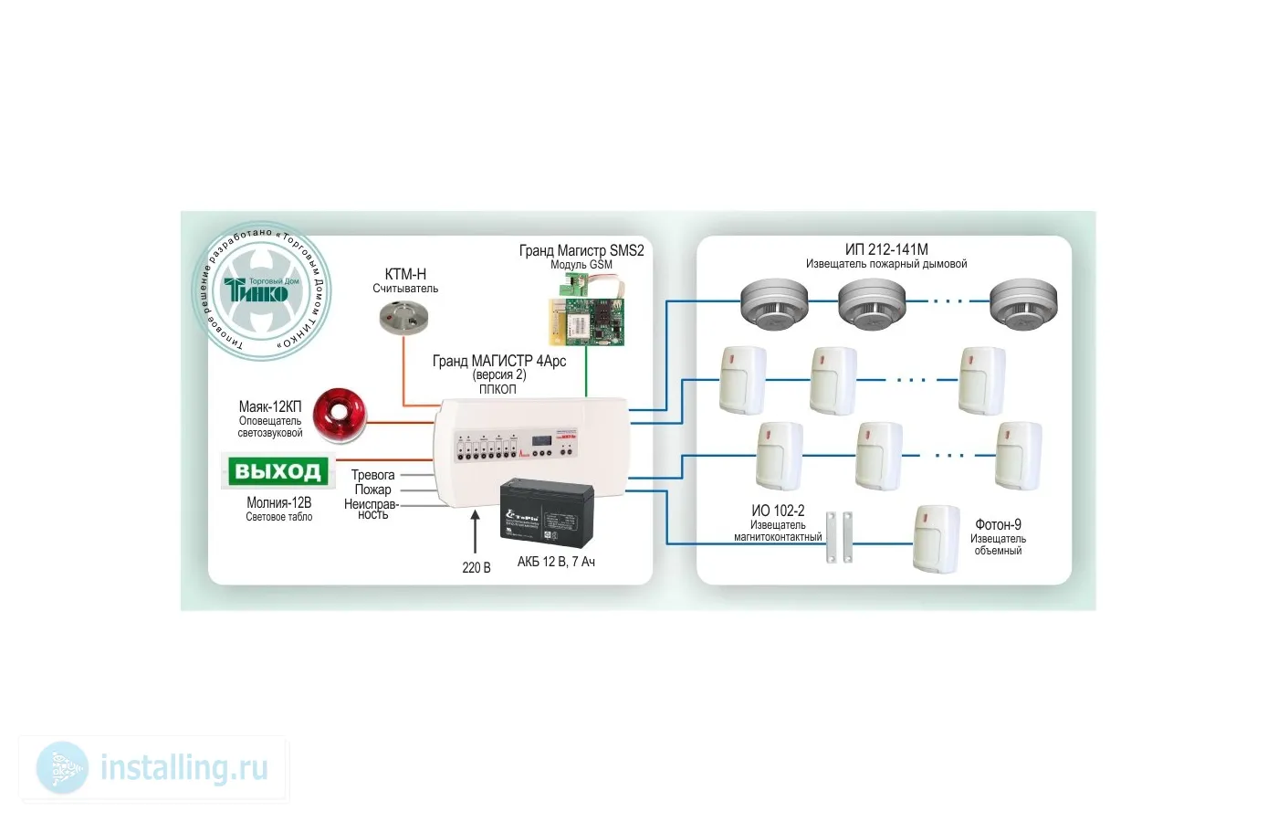 Запросить оферту на поставку Охранно-пожарная сигнализация на базе ППКОП Гранд МАГИСТР 4Арс (версия 2) Магистраль ОПС-019
