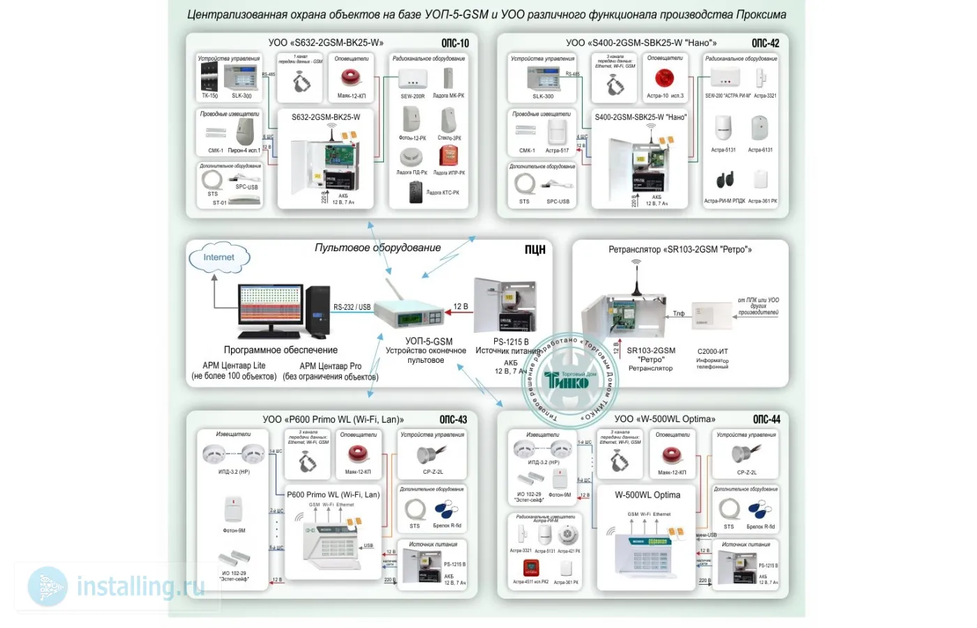 Система централизованной охраны объектов на базе УОП-5-GSM и УОО различного функционала производства Проксима Проксима ОПС-045