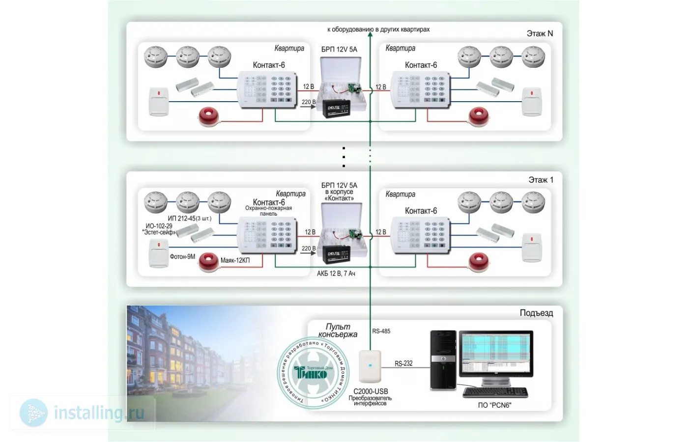 Система обеспечения безопасности квартир в многоквартирных домах на базе охранно-пожарных панелей "Контакт-6" Контакт ОПС-056
