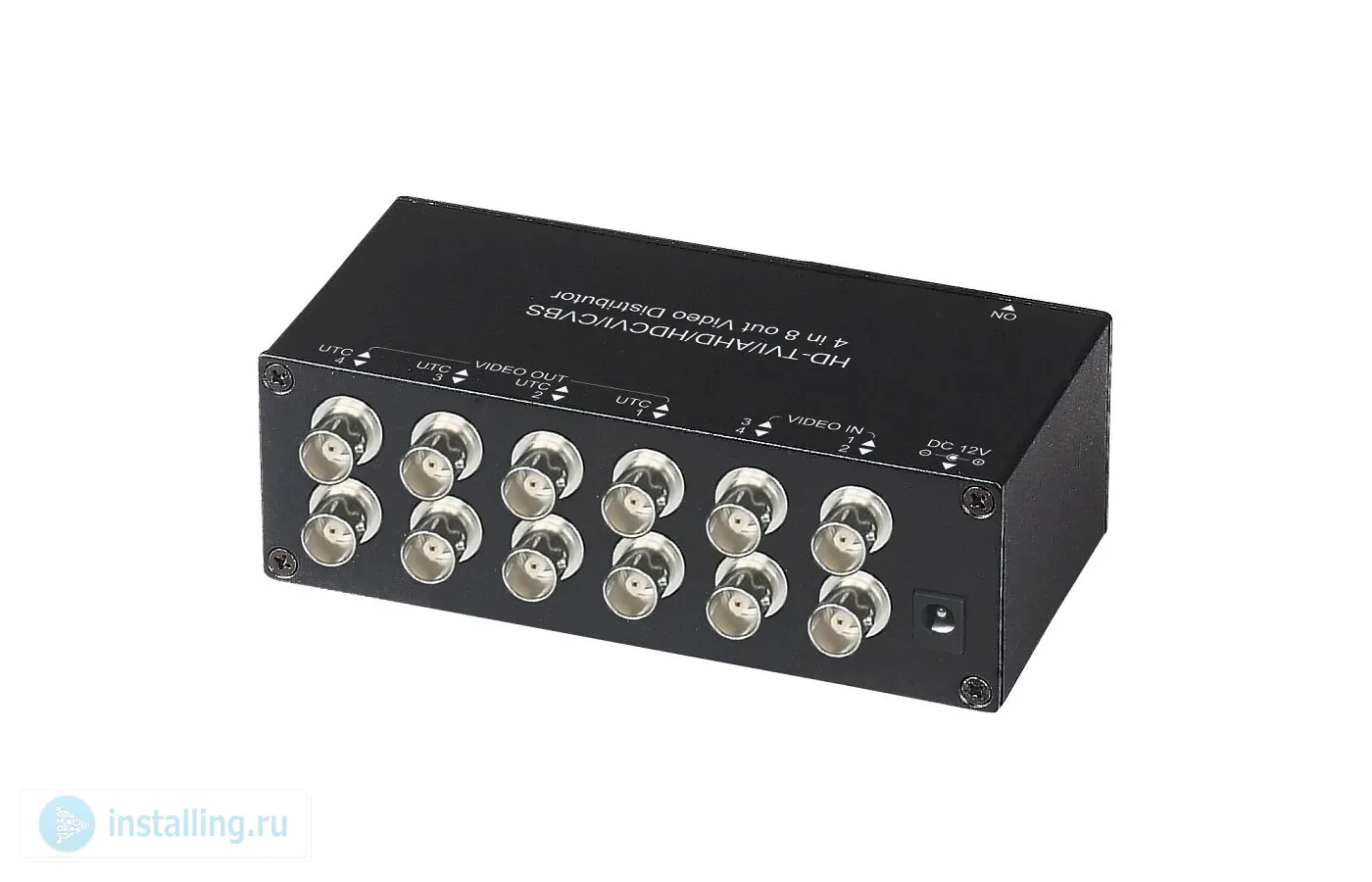 Разветвитель видеосигнала HDCVI/HDTVI/AHD Максимальное разрешение до 5МП; 4 входа - 8 выходов; Полоса пропускания до 100МГц ; Возможность передавать по 4 каналам HD-видеокамере сигналы управления UTC от регистратора по одному коаксиальному кабелю вместе с видеосигналом; Защита от перенапряженияTVS; DC 12В /500мА БП в комплекте; -40°...+55°C; 133x44x75мм; Рекомендуемый кабель RG59/RG6