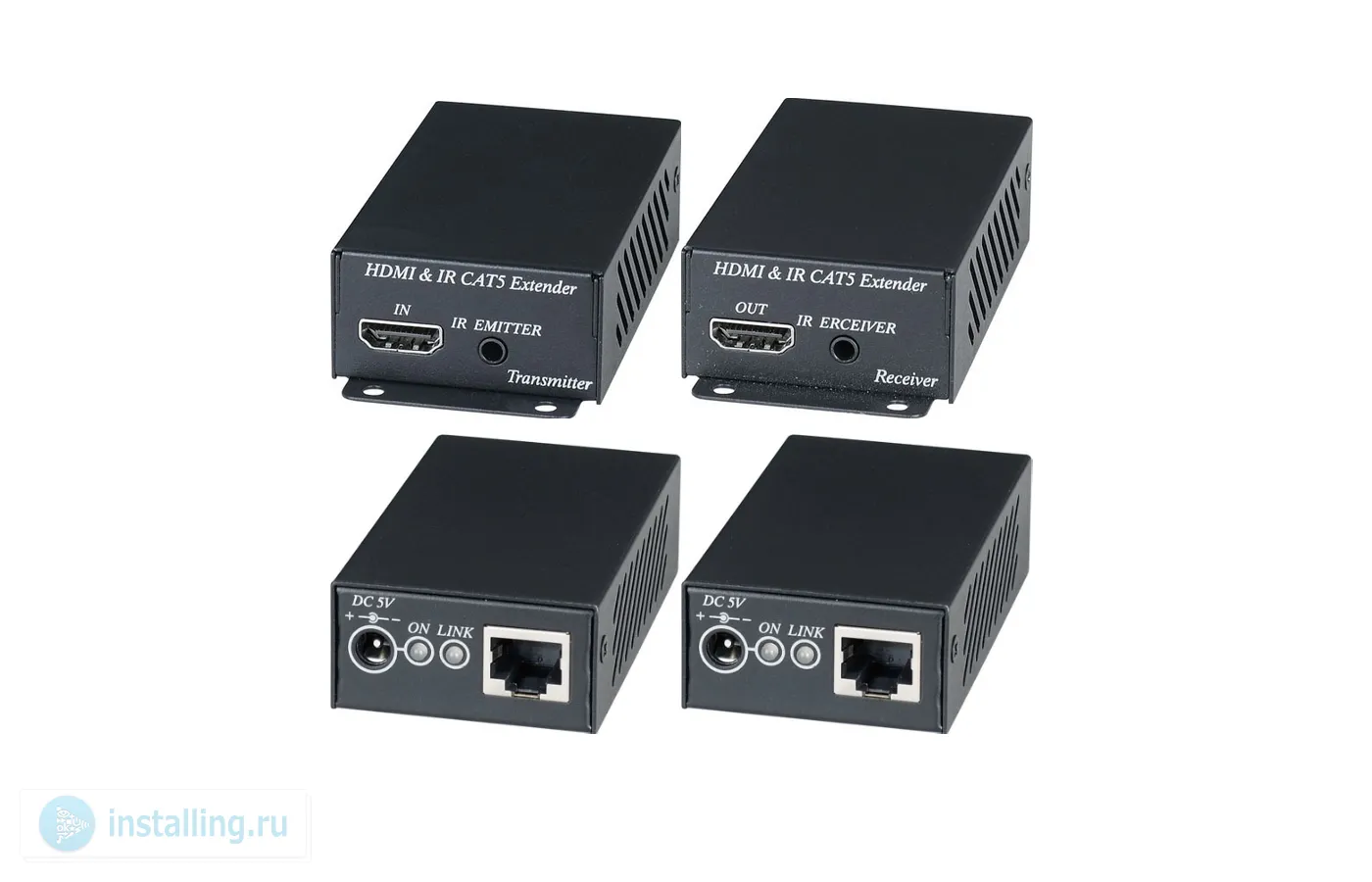 Комплект для передачи удлинитель HDMI сигнала с ИК повторителем по одному кабелю витой пары HDBaseT; Поддержка 1.4a HDMI и HDCP; Расстояние передачи до 60 м 1080p, CAT5e/6, до 70 м 1080p, CAT6a; Поддержка разрешения до 4Kx2K30Гц/24бит, 3D и цифровых форматов аудио LPCM 7.1, Dolby TrueHD, DTS-HD MA; -40...+55°C; 49.2х92х25 мм. Передатчик: 1 вход HDMI тип А, 2 выхода RJ-45, 1 ИК порт 3,5 мм. Приёмник: 1 выход HDMI тип А, 2 входа RJ-45, 1 ИК порт 3,5 мм. Максимальная скорость передачи данных 10,2 Гбит/сек. Питание каждого устройства 5VDC, 2A. Приёмник и излучатель ИК сигнала в комплекте. Передача ИК сигнала может осуществляться в прямом или обратном направлении.