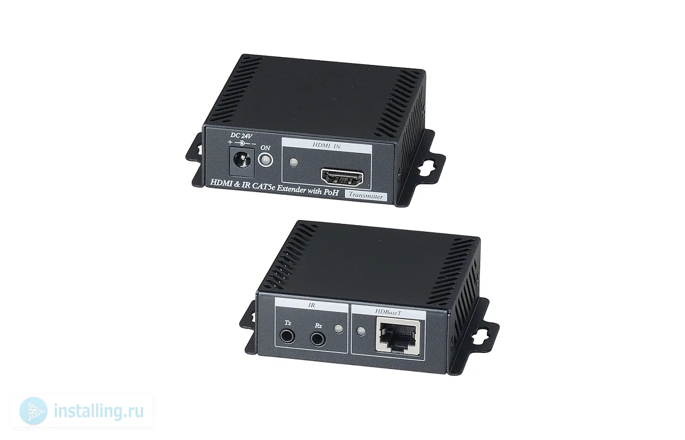 Комплект для передачи удлинитель HDMI сигнала, ИК сигнала и питания по одному кабелю витой пары HDBaseT; Поддержка версии 1.4 HDMI и HDCP. Расстояние передачи до 60 м 1080p, CAT5e/6, до 70 м 1080p, CAT6a; Поддержка разрешения до 4Kx2K30Гц/24бит, 3D и цифровых форматов аудио LPCM 7.1, Dolby TrueHD, DTS-HD MA; Передача ИК сигнала в прямом или обратном направлении; Поддержка технологии Power over HDBaseT PoH; Передатчик: 1 вход HDMI тип А, 1 выход RJ-45, 2 ИК порта 3,5 мм. Приёмник: 1 выход HDMI тип А, 1 вход RJ-45, 2 ИК порта 3,5 мм; Максимальная скорость передачи данных 10,2 Гбит/сек; DC12В/1000мA В комплекте БП для передатчика, приемник внешнего питания не требует; 67х95х27 мм ; -40...+55°C.