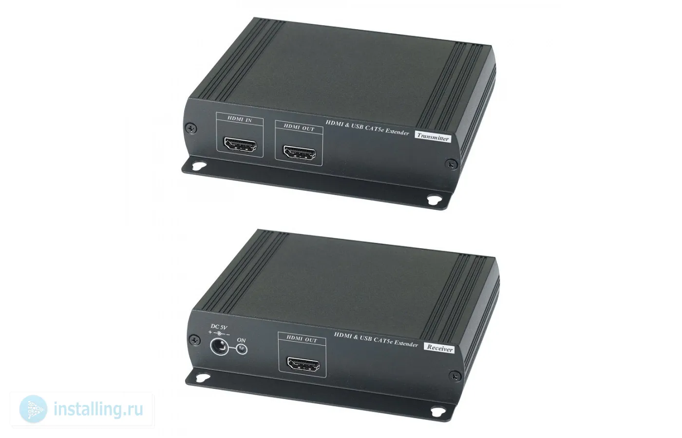 Комплект передатчик +приемник для передачи HDMI сигнала по витой паре до 120м CAT5e. Позволяет передавать HDMI 1.3b, 1080p и 1920x1200 WUXGA, 60Гц, и USB 2.0 2 порта; Можно использовать совместно с SR01 для увеличения расстояния без ограничения по количеству; Передатчик: Вх. - HDMIA/Роз.2,5х5,5ммDC5V. Вых. - HDMIA/USBB/RJ45. Приёмник: Вх. - USBAx2/Роз.2,5х5,5ммDC5V/RJ45. Вых. - HDMIA; DC5В /2000мА БП 2 шт в комплекте; -40°...+55°C; 140x30x125 мм; Устройство предназначено для работы с PC и регистраторами на базе ОС Windows/Linux с драйверами для работы USB-хаба