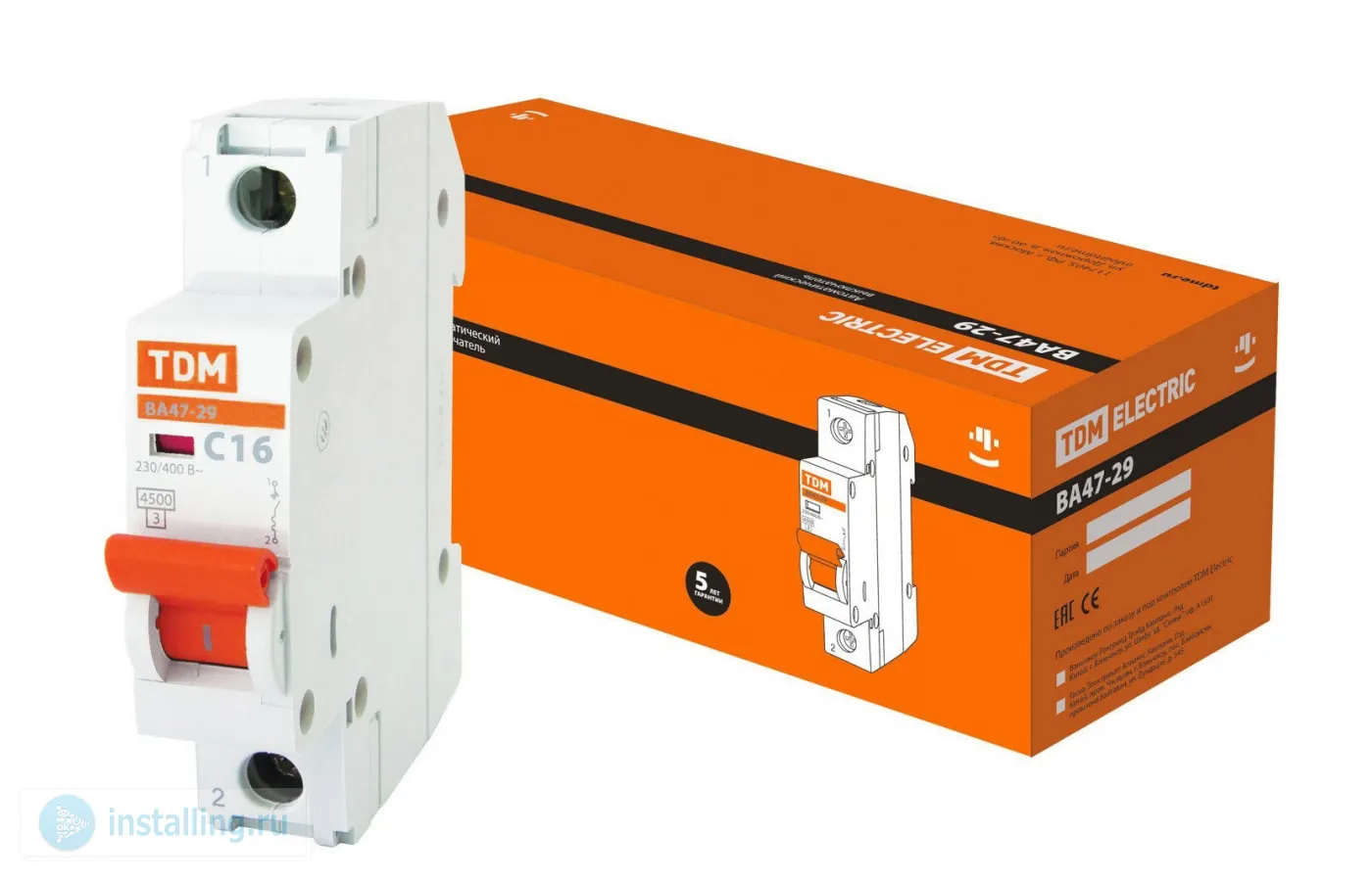 На DIN-рейку, 1-полюсный, номин. отключающая способность 4.5кА, характер.срабатывания С, I-номин. 16 А